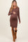 Brown Ribbed Long Sleeve Half Button Up Maternity Fitted Dress