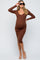 Brown Ribbed Long Sleeve Maternity Midi Dress