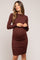 Brown Ribbed Mock Neck Ruched Long Sleeve Maternity Dress