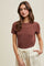 Brown Ribbed Short Sleeve Curved Hem Top