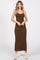 A sleeveless ribbed dress featuring adjustable cami straps, a side slit and a rounded neckline.