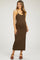 Brown Ribbed Sleeveless Side Slit Maternity Dress