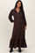 Brown Solid Long Sleeve Button Down Tiered Collared Maternity Dress