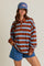 Brown Striped Oversized Long Sleeve Polo Top