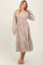Brown Striped Ruched Bodice Balloon Sleeved Midi Dress