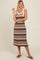 Brown Striped Shoulder Tie Side Slit Midi Dress