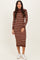 Brown Striped Turtleneck Midi Sweater Dress