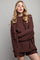 A set that includes a sweater top and knit shorts. Top has a rounded neckline and long drop shoulder sleeves. Shorts include an elastic waistband.