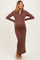 Brown Textured Rib Quarter Zip Maternity Maxi Dress