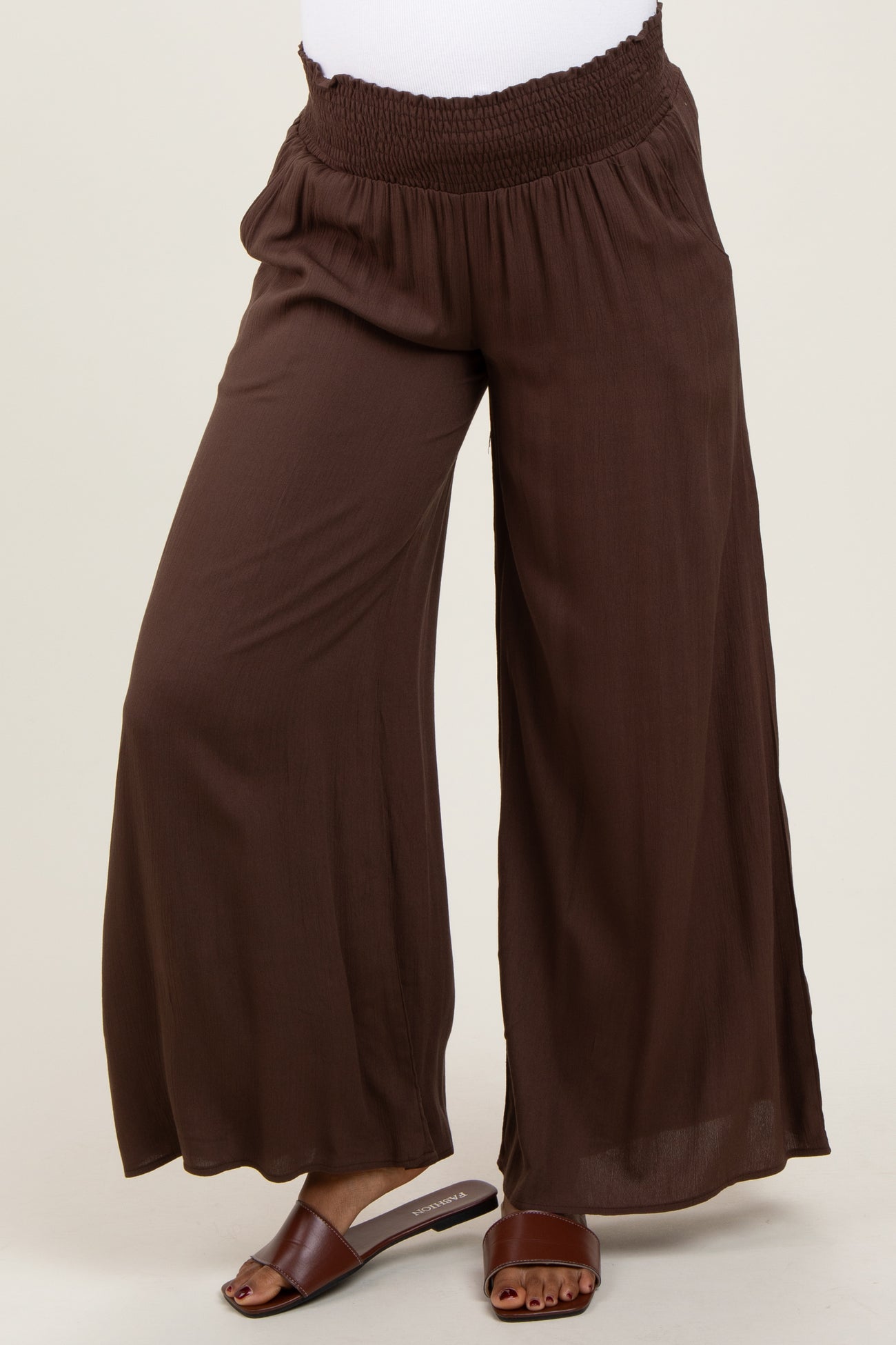 Experience ultimate comfort and style with our Brown Wide Smock Waist Maternity Pants. Designed with a stretchy smock waistband, these pants provide gentle support and adapt to your growing bump. The wide-leg cut ensures breathability and freedom of movement, perfect for everyday wear or relaxing days at home. Crafted from lightweight, soft fabric, these pants keep you comfortable throughout your pregnancy journey. Pair effortlessly with your favorite tops for a chic maternity look. Elevate your wardrobe with these versatile, flattering maternity pants that combine fashion and function beautifully.