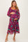 Burgundy Floral Chiffon Smocked Ruffle Tiered Maternity Midi Dress