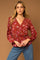 Burgundy Floral Long Sleeve V Neck Blouse