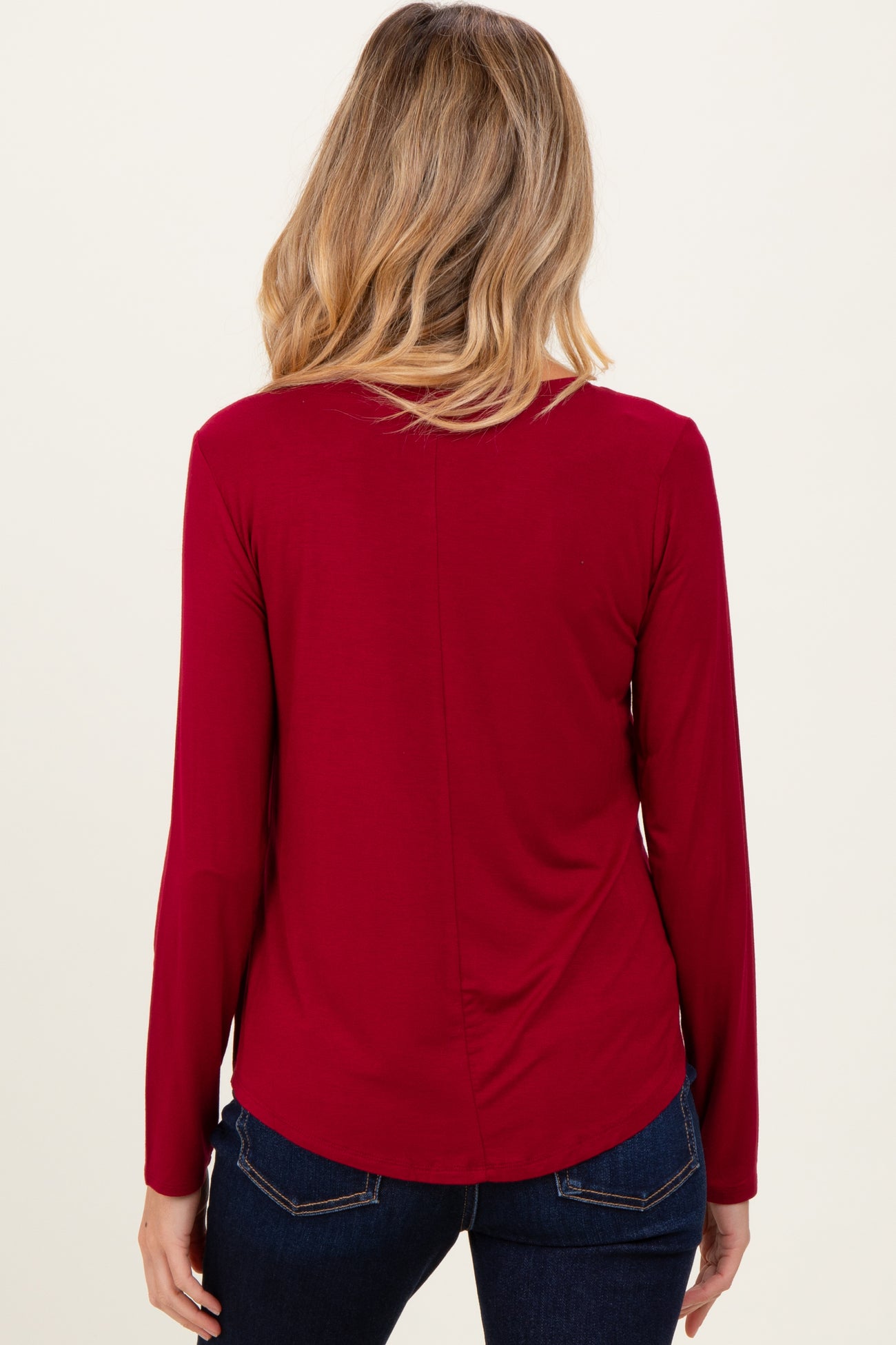 Burgundy Flowy Round Hem Maternity Long Sleeve Top