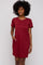 Burgundy French Terry Cuffed Short Sleeve Dress
