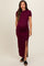 Burgundy Mock Neck Front Slit Short Sleeve Maternity Maxi Dress
