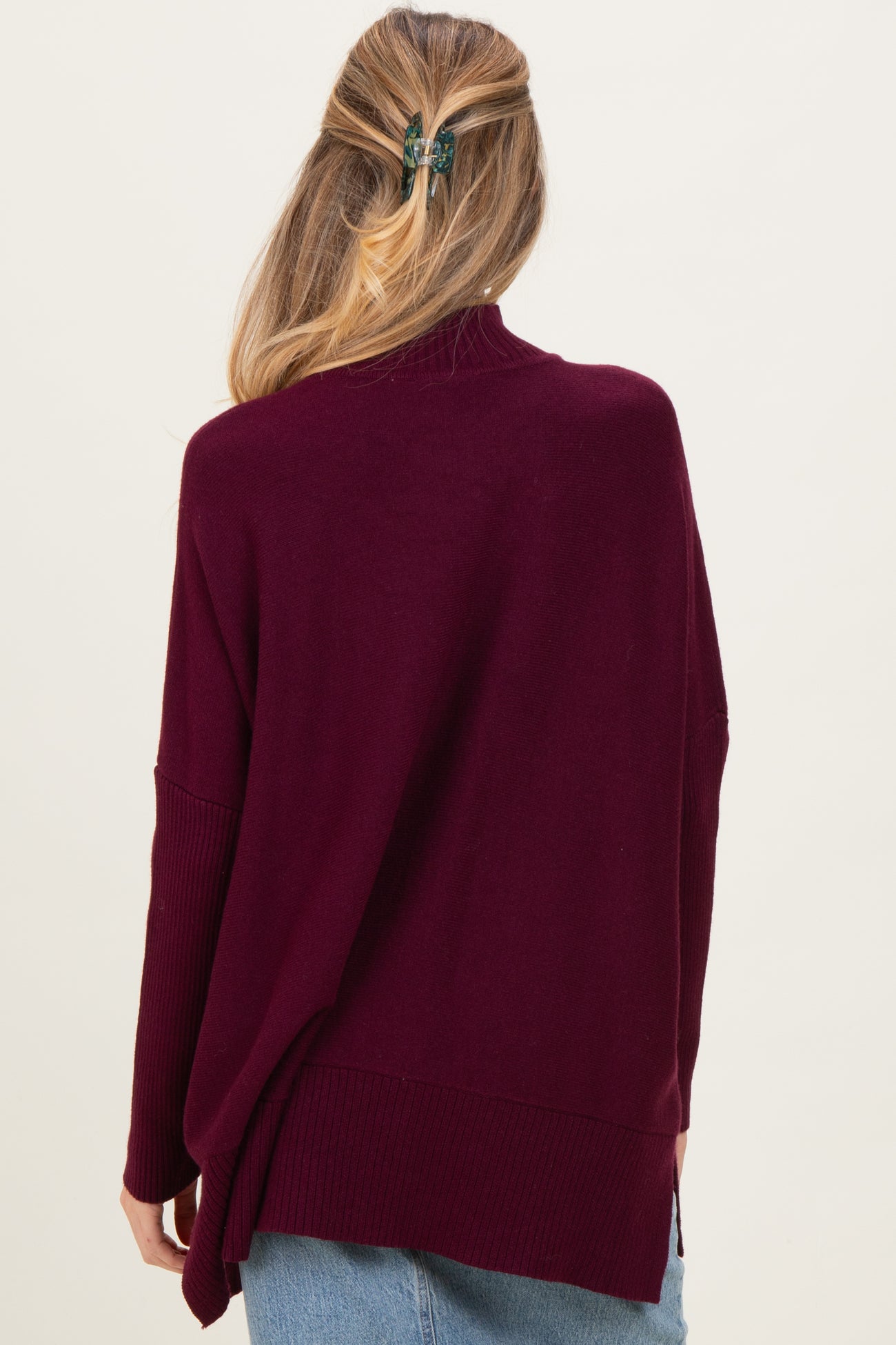 Burgundy Mock Neck Oversized Sir Slit Maternity Sweater Top