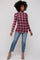 Burgundy Plaid Mock Neck Brushed Long Sleeve Top