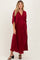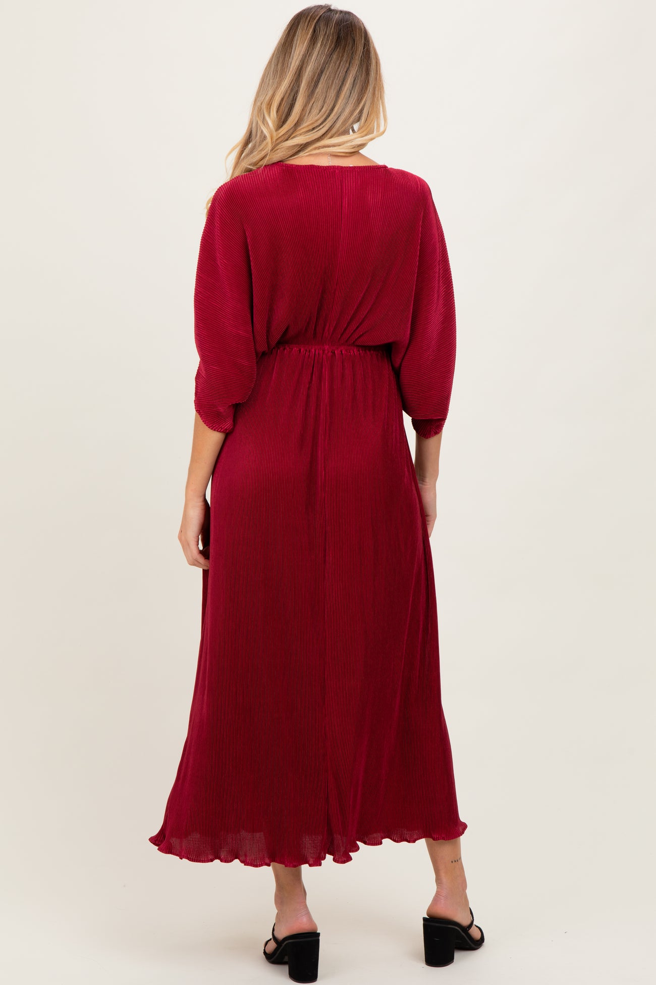 Burgundy Pleated Satin Dolman Sleeve Maternity Maxi Dress