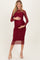 Burgundy Printed Mesh Long Sleeve Maternity Midi Dress