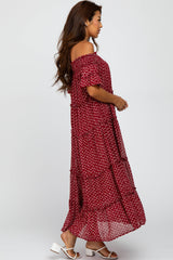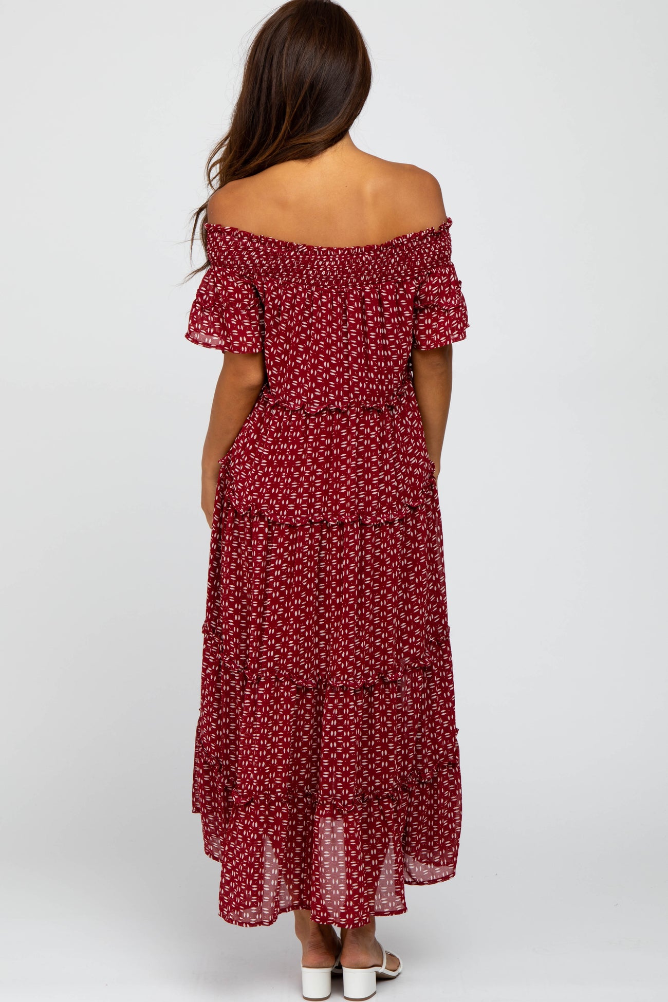 Details A maxi dress featuring a smocked, elastic off shoulder neckline, short tiered sleeves, and a tiered body. Dress is lined to prevent sheerness. Content + Care