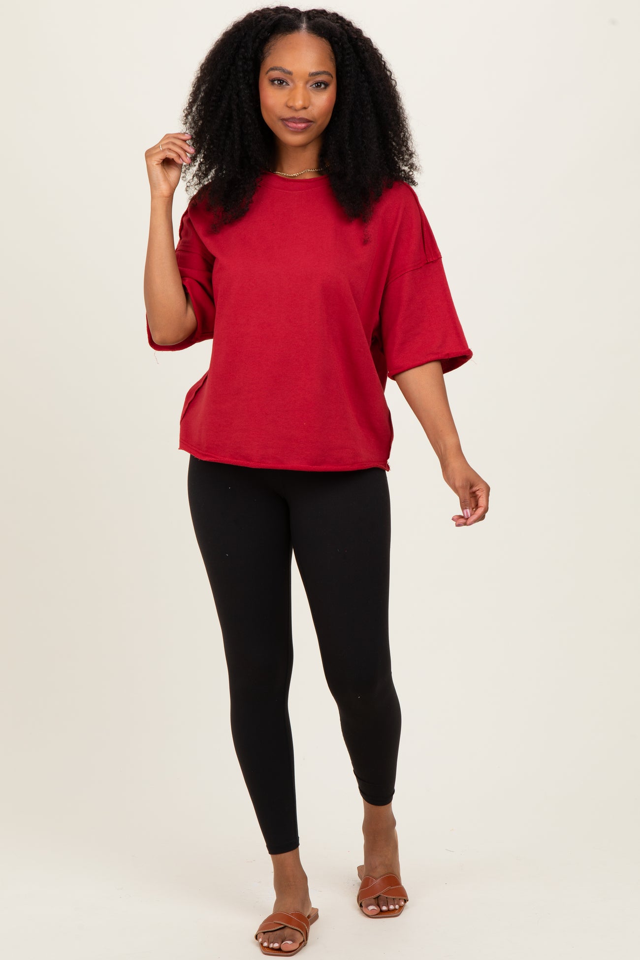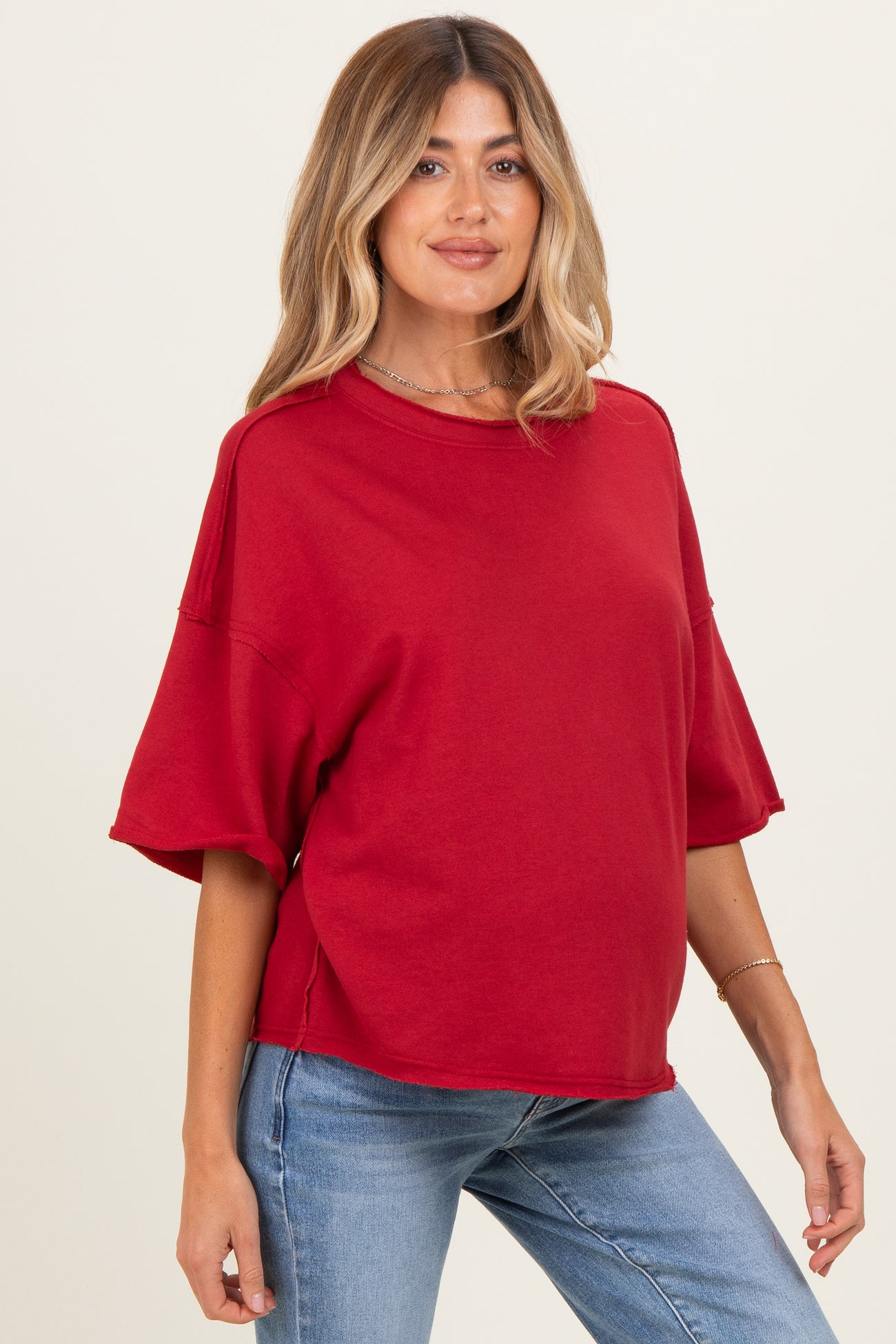 Burgundy Raw Cut Edge Maternity Boxy Tee
