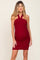 Burgundy Ribbed Knit Halter Neck Maternity Fitted Dress