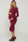 Burgundy Ribbed Mock Neck Button Side Slit Maternity Midi Dress