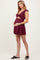 Burgundy Ribbed Ruffle Twist Front Maternity Swim Dress
