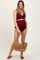 Burgundy Ribbed Twist Cutout Front Maternity Swim Set