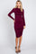 A solid long sleeve fitted dress with a mock neck and side ruching.