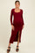 Step out in style and comfort with our Burgundy Scoop Neck Long Sleeve Front Slit Maternity Maxi Dress. Designed to flatter your growing bump, this elegant ribbed knit dress features a modest scoop neckline and figure-hugging long sleeves for a cozy yet chic look. The front slit adds a touch of allure and ease of movement, perfect for day-to-night wear. Crafted from stretchy, breathable fabric, it offers maximum comfort while embracing your silhouette. Ideal for casual outings, special occasions, or maternity photoshoots, this versatile maxi dress is a must-have addition to your maternity wardrobe.