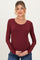 Burgundy Scoop Neck Long Sleeve Maternity Top
