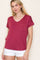 Burgundy V-Neck Front Pocket Short Sleeve T-Shirt