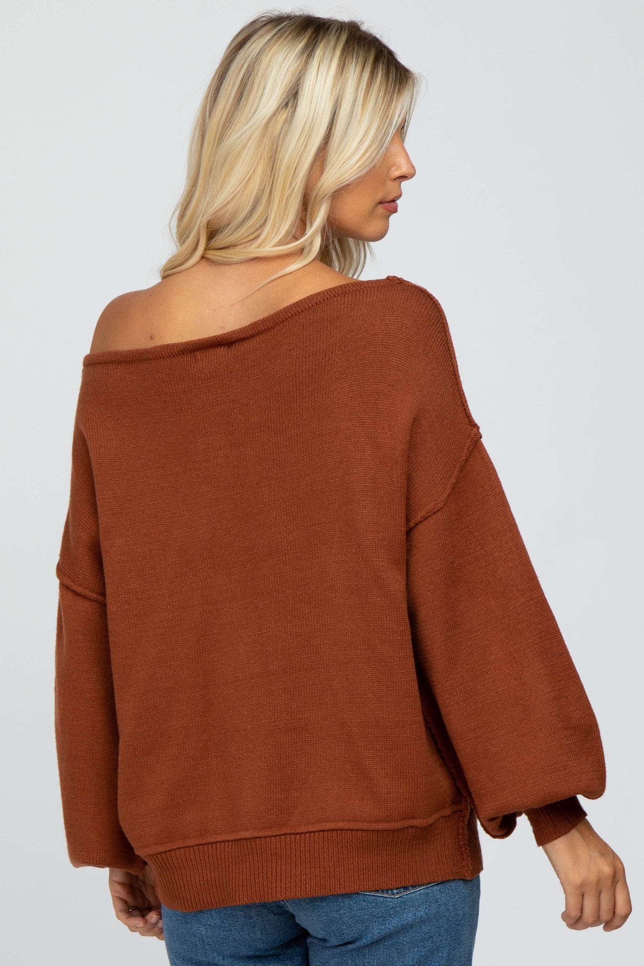 An ultra soft knit sweater featuring a boat neckline, long bubble sleeves and exposed seam detailing.