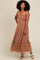 Camel Dotted Mesh Overlay Shoulder Tie Midi Dress