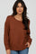 A knit sweater featuring long braided sleeves and a rounded neckline.