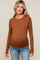A solid hued knit maternity top featuring long sleeves and a rounded neckline.