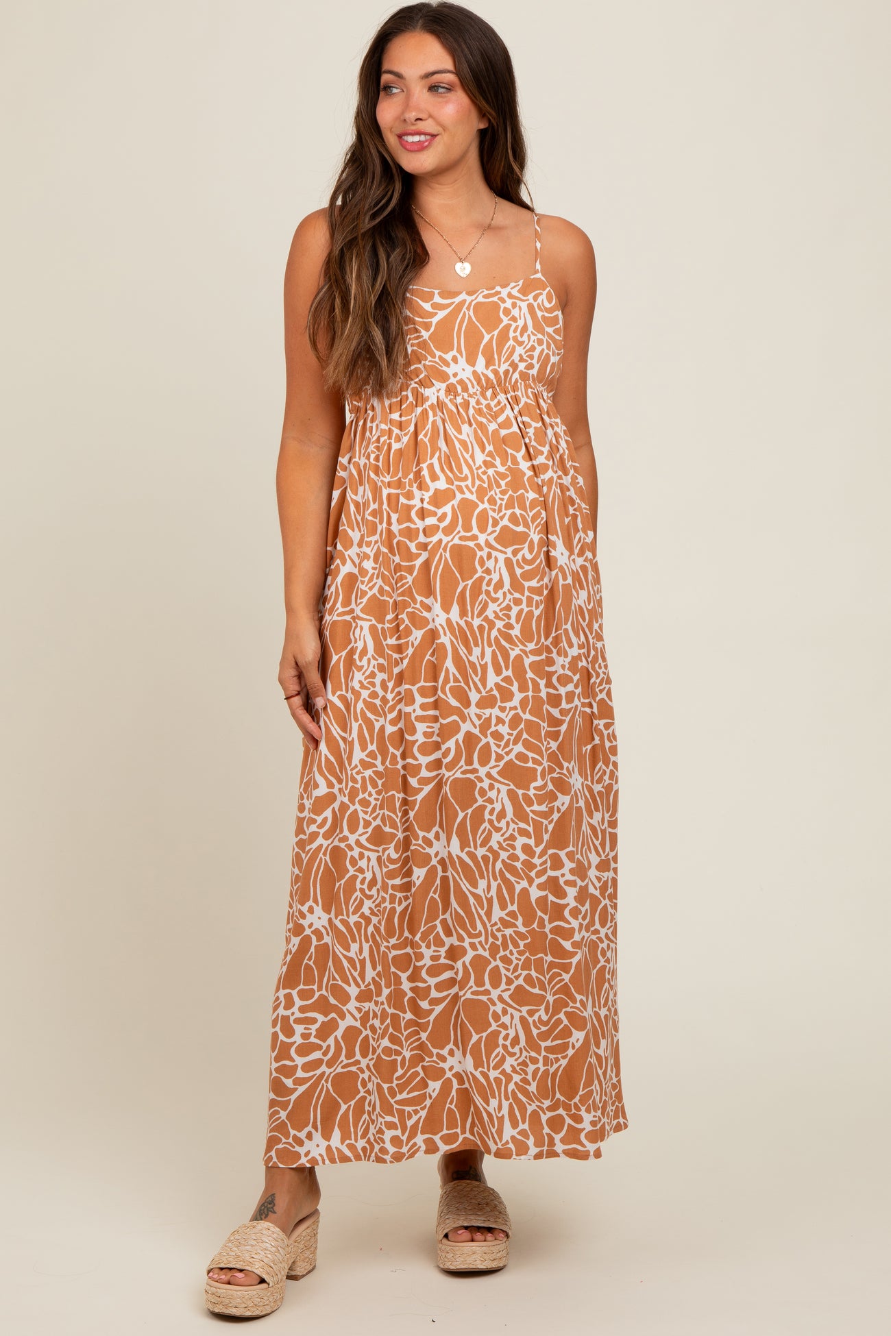 Camel Printed Maternity Maxi Dress