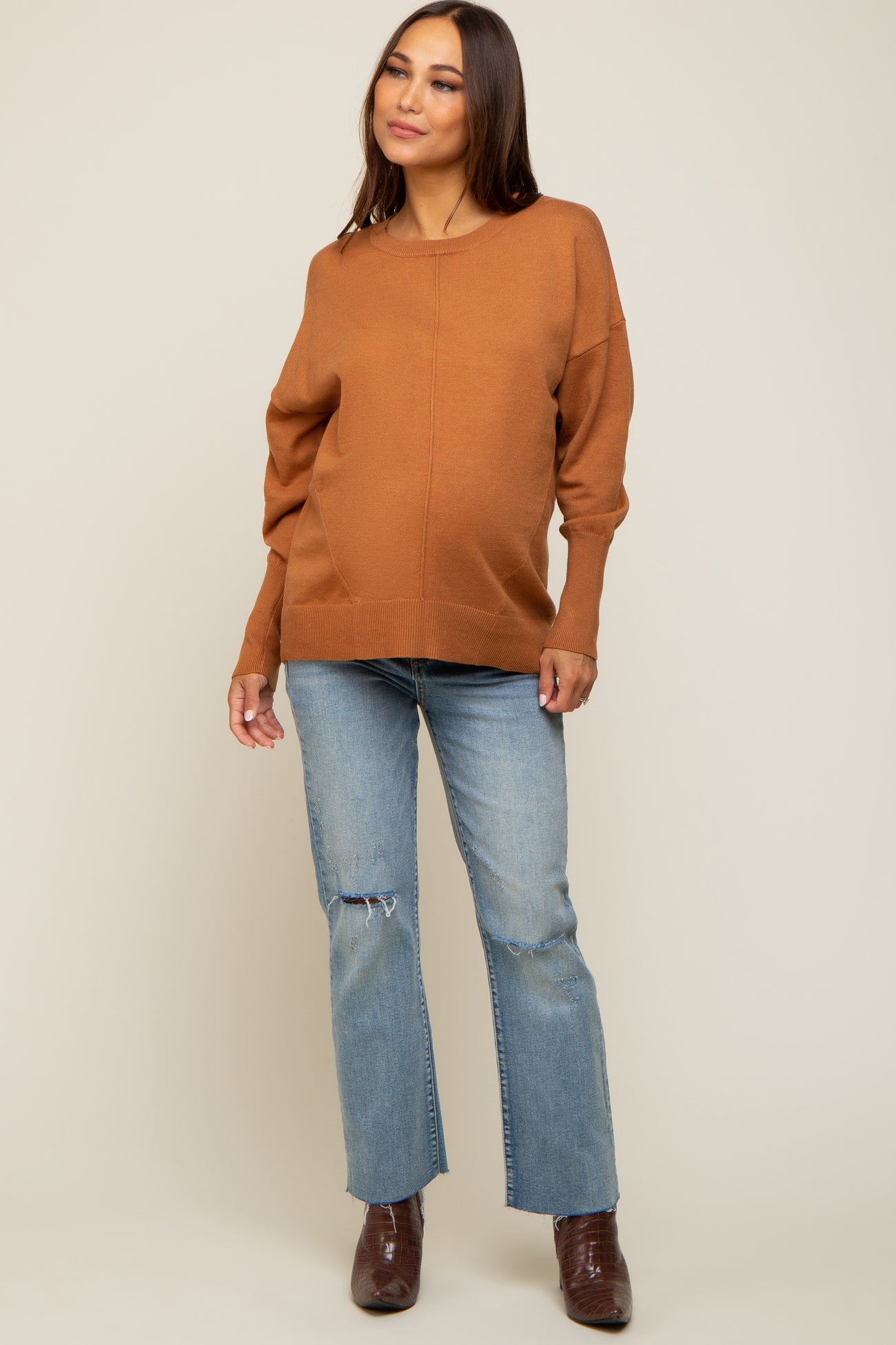 Camel Rib Knit Exposed Seam Maternity Sweater