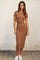 Camel Ribbed Knit Bodycon Midi Dress