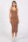 Camel Ribbed Knit Sleeveless Side Slit Dress