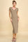 Camel Short Sleeve Side Button Ribbed Midi Dress