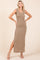 Camel Striped Ribbed Sleeveless Side Slit Maxi Dress
