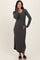 Charcoal Button Up Ribbed Knit Long Sleeve Midi Dress