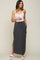 A solid maternity maxi skirt with an elastic drawstring waist and cargo pocket detail.