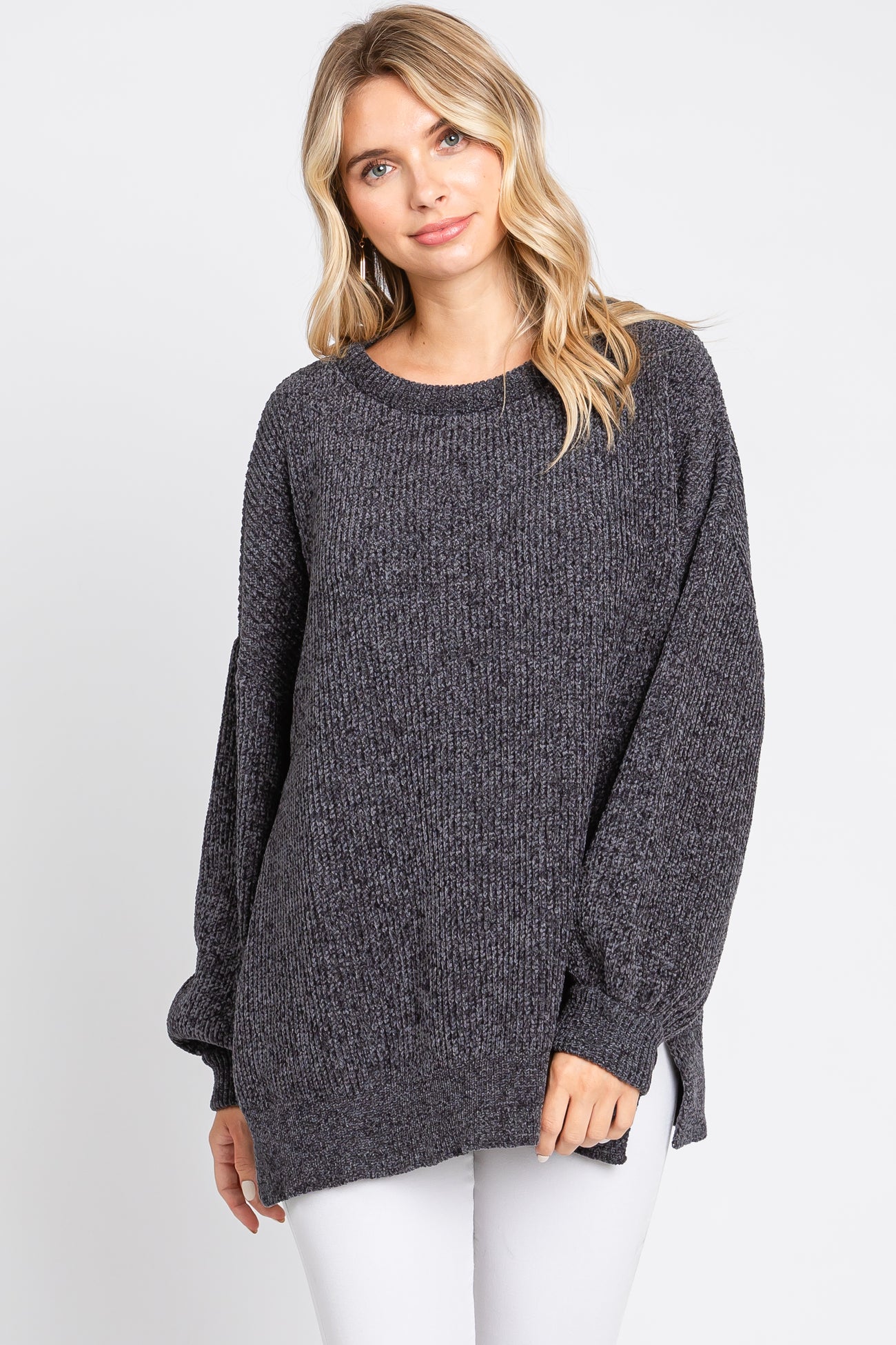 Charcoal Chenille Knit Balloon Sleeve Maternity Sweater