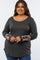 A long sleeve plus top featuring colorblock sleeve and button detail.