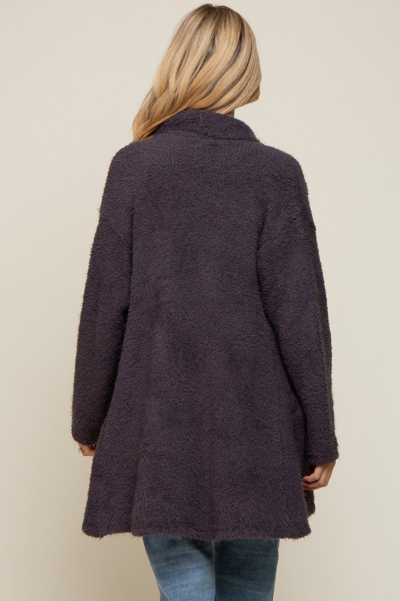 Charcoal Fuzzy Knit Draped Maternity Cardigan