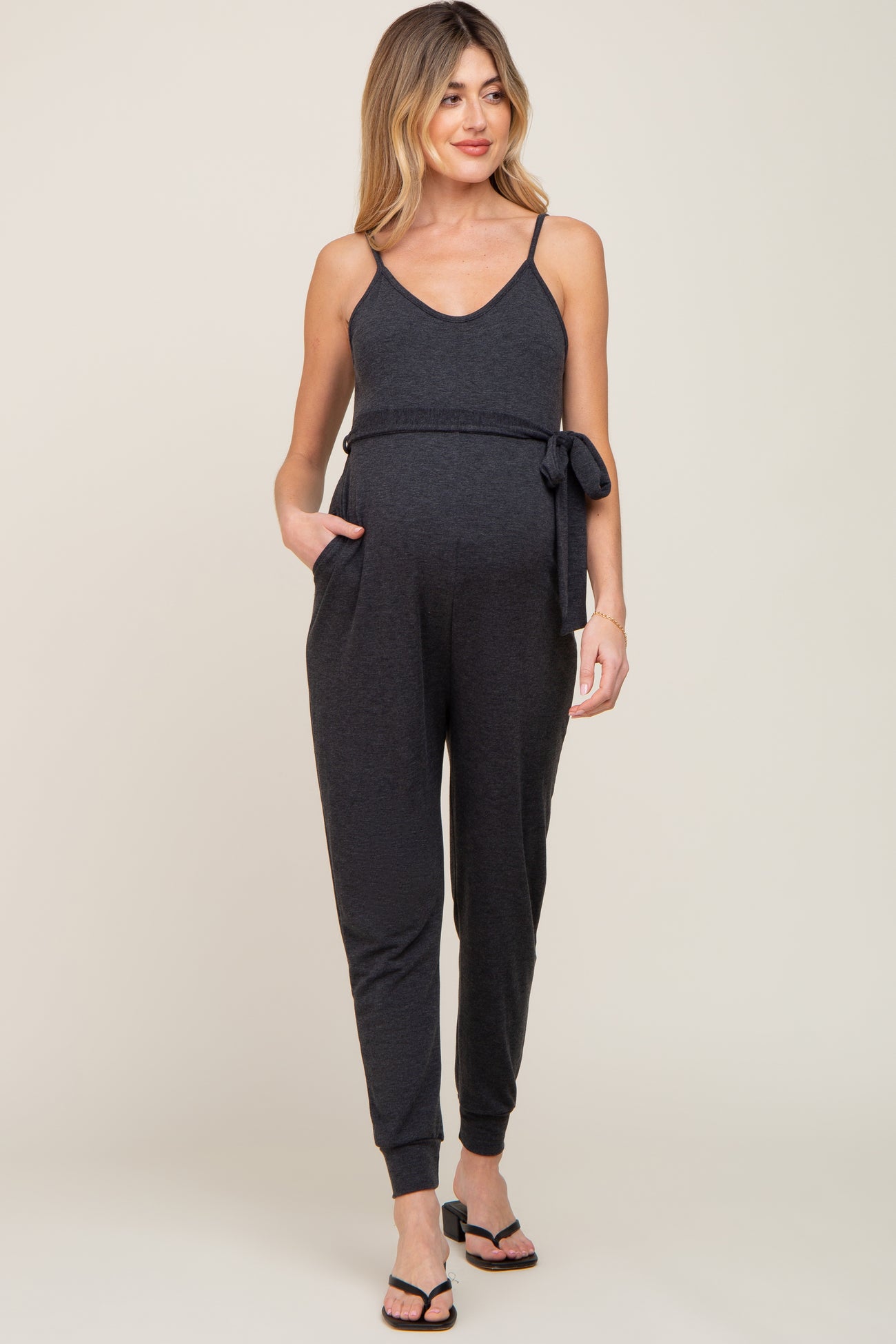Charcoal Grey Sash Tie Maternity Jumpsuit