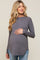 A heathered maternity top featuring long sleeves, a curved hem and a rounded neckline.